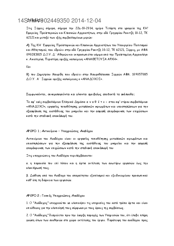 Αναζήτηση σε προκηρύξεις και συμβάσεις για: