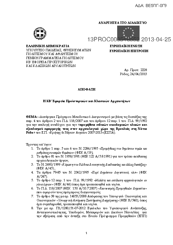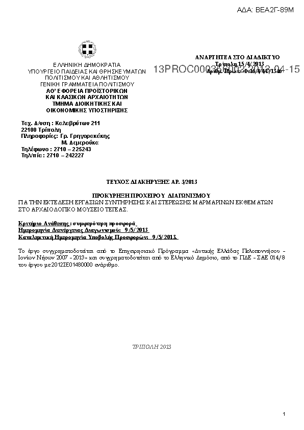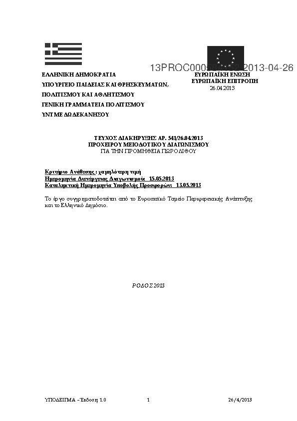 Αναζήτηση σε προκηρύξεις και συμβάσεις για: