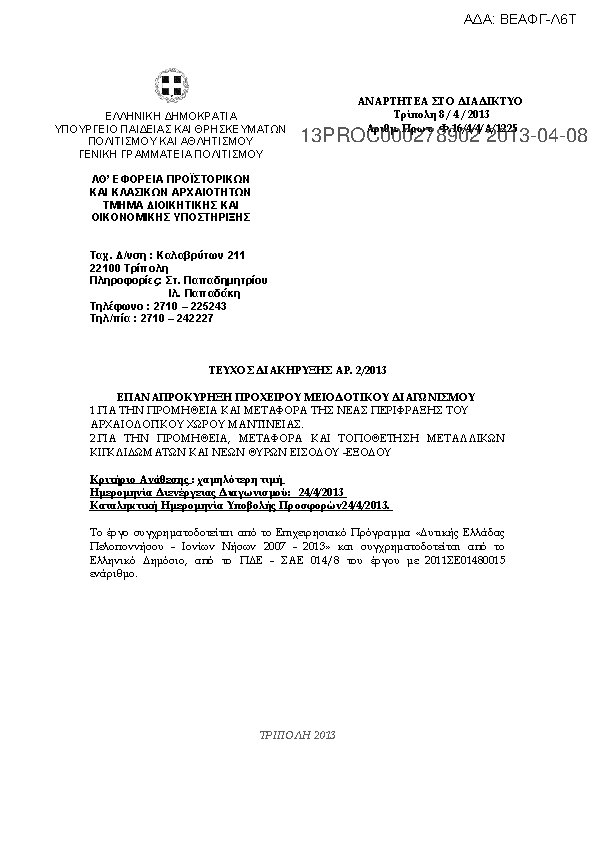 6. ΤΕΥΧΟΣ ΔΙΑΚΗΡΥΞΗΣ ΑΡ. Φ2/7/294/14