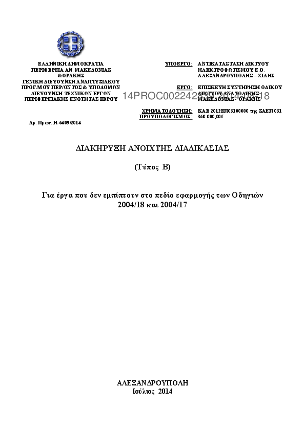 Αναζήτηση σε προκηρύξεις και συμβάσεις για: