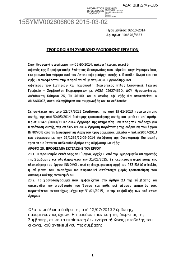 1. ΣΥΜΒΑΣΗ ΣΥΜΒΟΥΛΟΥ ΤΕΧΝΙΚΗΣ ΥΠΟΣΤΗΡΙΞΗΣ ΤΟΥ ΕΡΓΟΥ “THIROPEDIA"