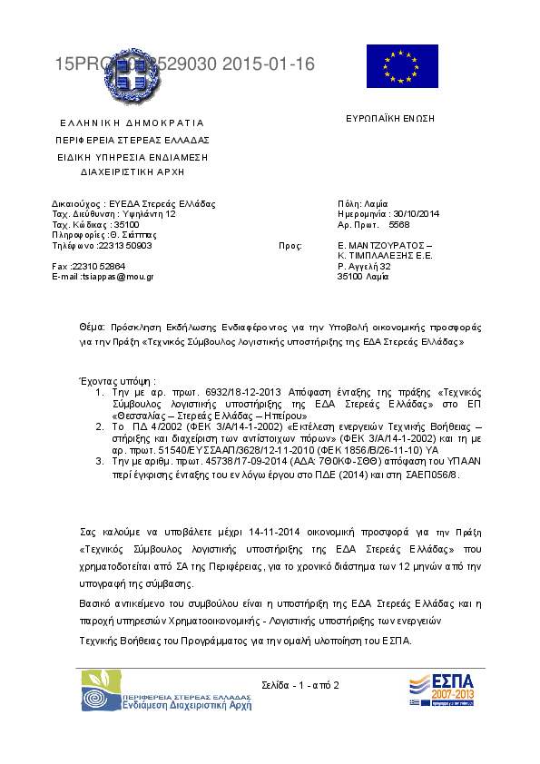 3. ΠΡΟΣΚΛΗΣΗ ΓΙΑ ΥΠΟΒΟΛΗ ΠΡΟΣΦΟΡΑΣ
