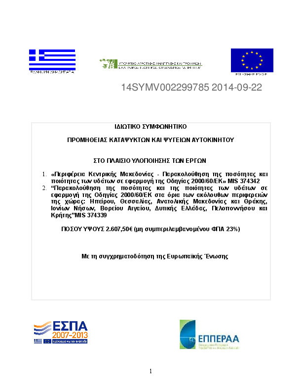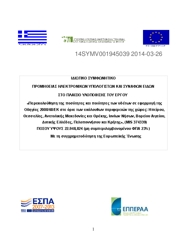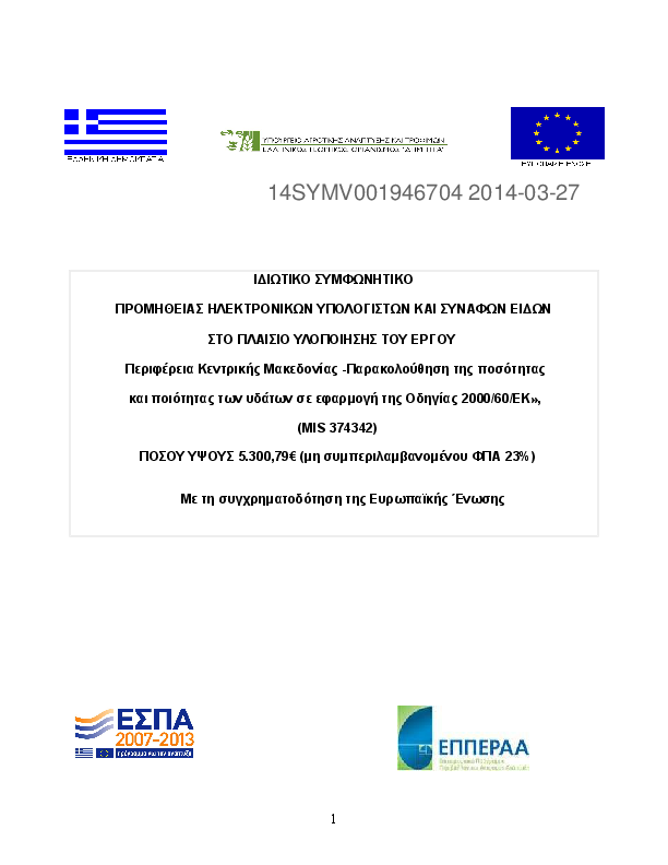 3. Προμήθεια ηλεκτρ. υπολογιστών στα πλαίσια της υλοποίησης του έργου παρακ. των υδάτων ΜIS 374339