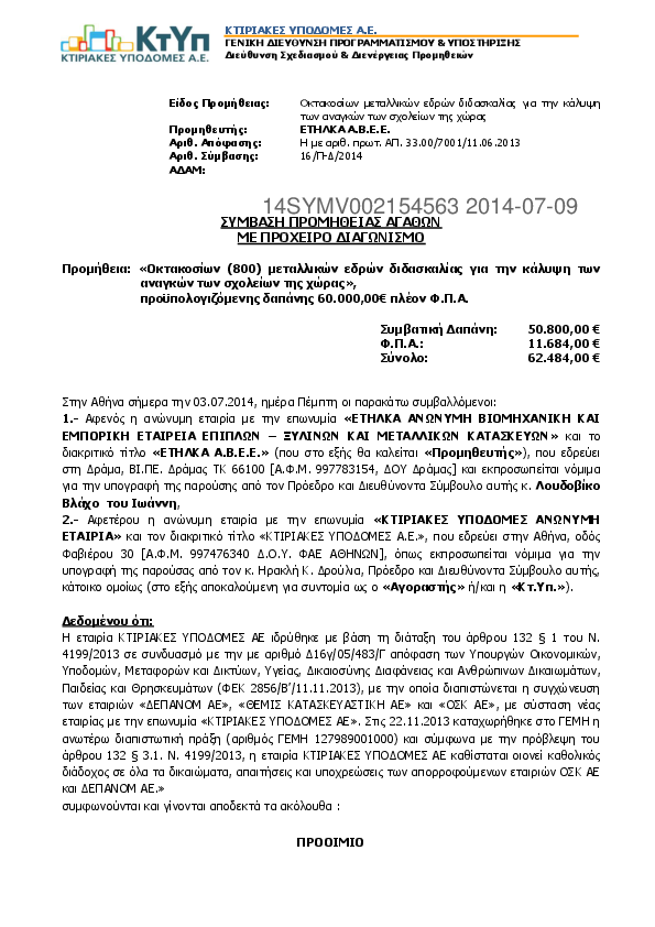 4. ΣΥΜΒΑΣΗ ΠΡΟΜΗΘΕΙΑΣ 800 ΜΕΤΑΛΙΚΩΝ ΕΔΡΩΝ ΔΙΔΑΣΚΑΛΙΑΣ