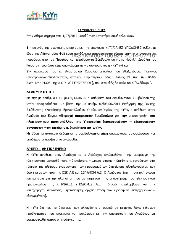 5. Παροχή υπηρεσιών Συμβούλου για την Υποστήριξη του ηλεκτρονικού Πρωτοκόλλου της Υπηρεσίας