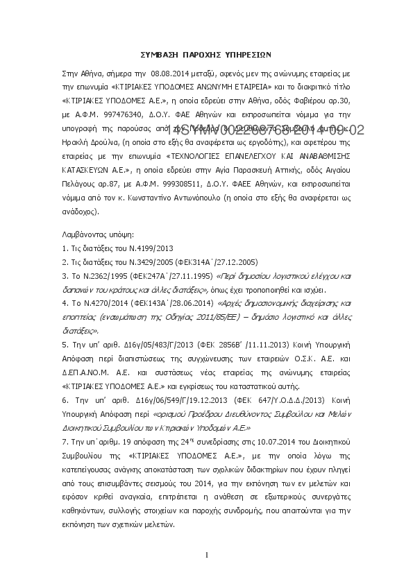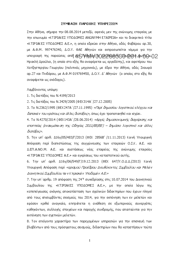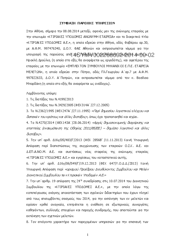 8. Σύμβαση παροχής Υπηρεσιών για το Λύκειο Ληξουρίου Κεφαλονιάς