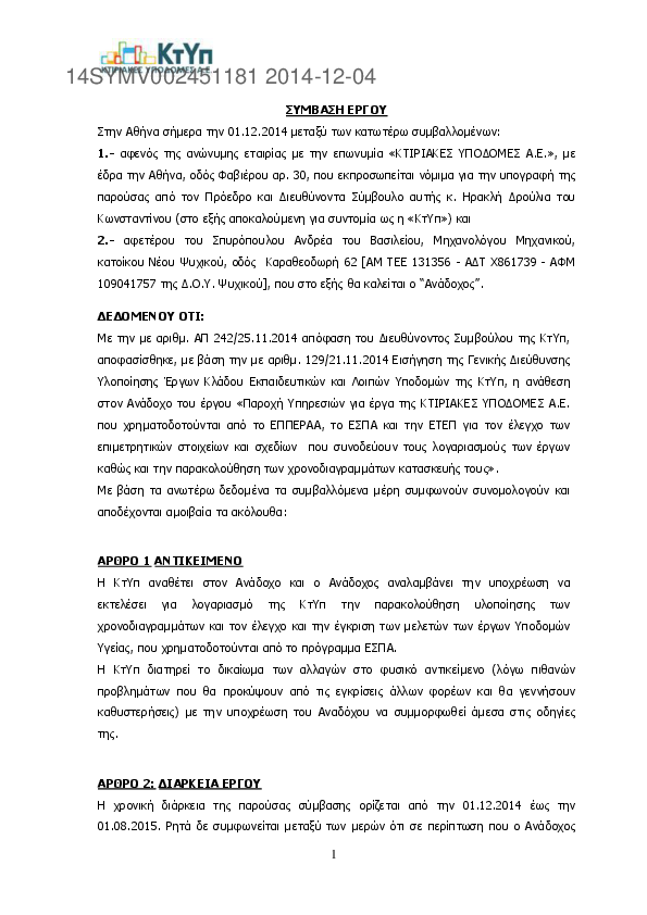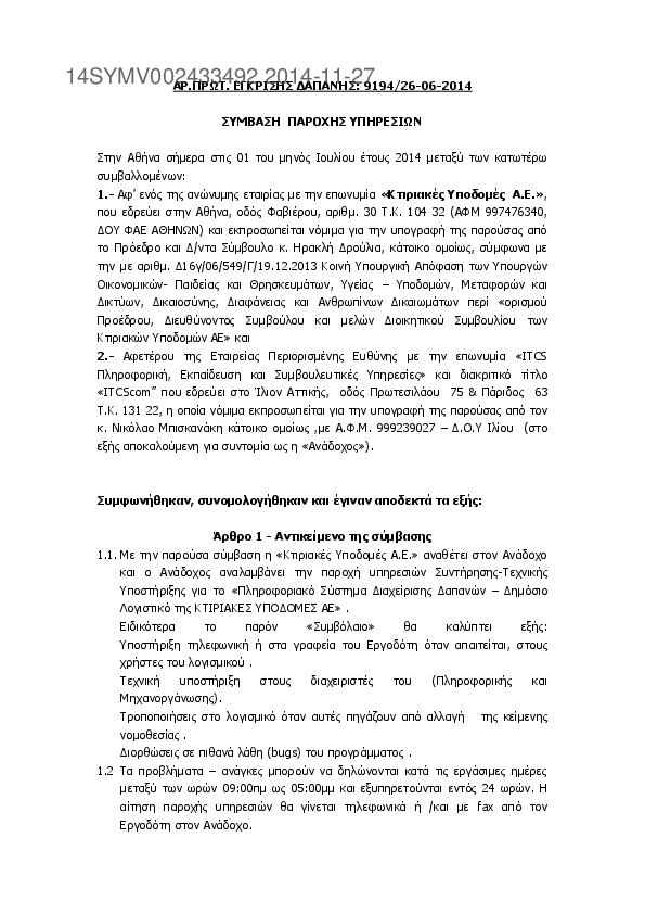 2. ΣΥΜΒΑΣΗ ΠΑΡΟΧΗΣ ΥΠΗΡΕΣΙΩΝ ΤΗΣ ΚΤΥΠ Α.Ε. "ΔΗΜΟΣΙΟ ΛΟΓΙΣΜΙΚΟ"