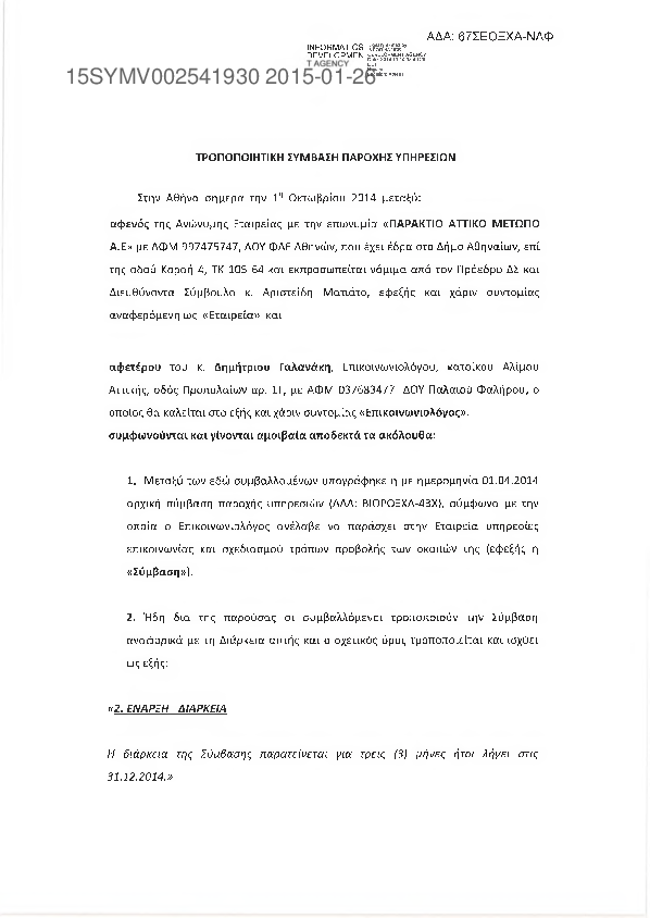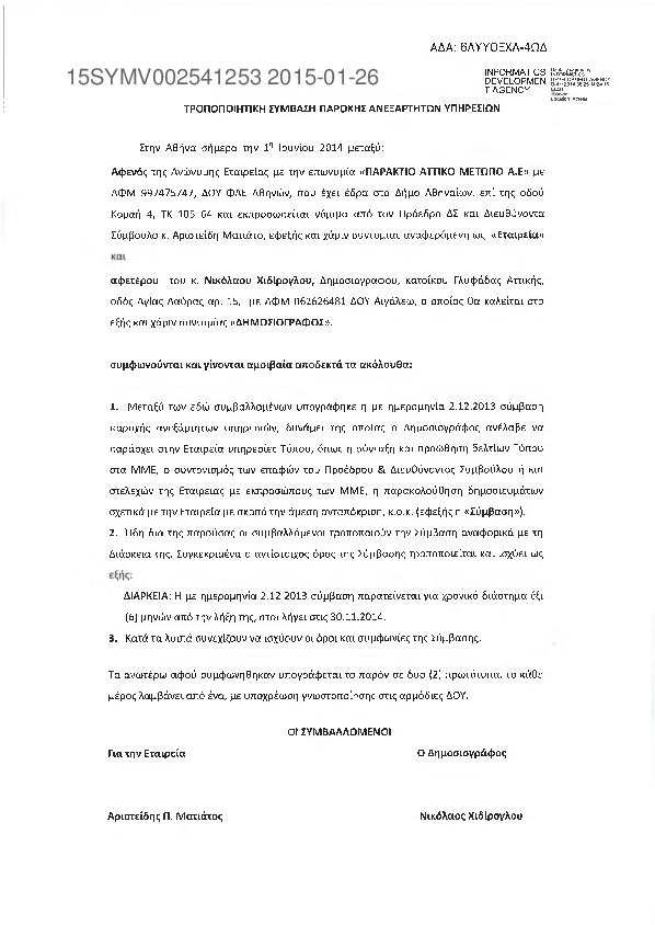5. ΤΡΟΠΟΠΟΙΗΤΙΚΗ ΣΥΜΒΑΣΗ ΠΑΡΟΧΗΣ ΑΝΕΞΑΡΤΗΤΩΝ ΥΠΗΡΕΣΙΩΝ