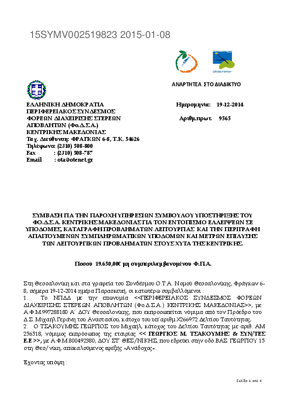 3. Σύμβαση παροχής υπηρεσιών συμβούλου τεχνικής υποστήριξης του ΦΟ.Δ.Σ.Α. Κεντρικής Μακεδονίας για τον