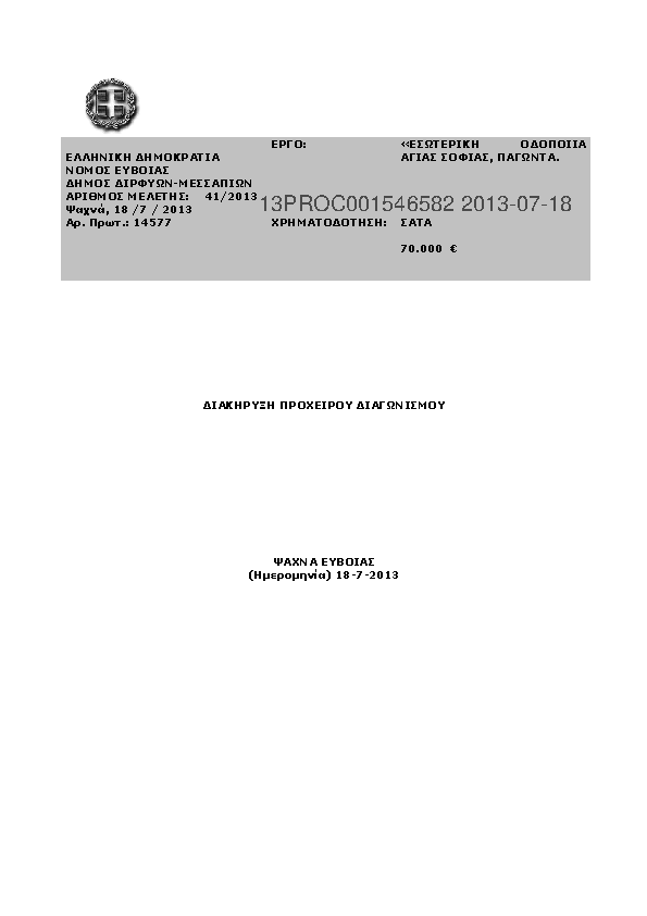 7. ΔΙΑΚΗΡΥΞΗ ΓΙΑ ΤΟ ΕΡΓΟ: ΄΄ ΕΣΩΤΕΡΙΚΗ ΟΔΟΠΟΙΙΑ ΑΓ. ΣΟΦΙΑΣ, ΠΑΓΩΝΤΑ΄΄