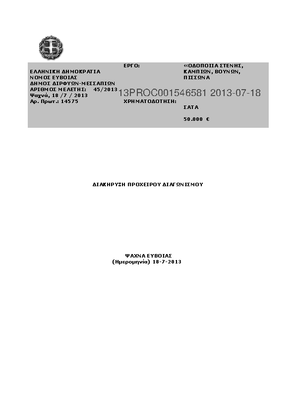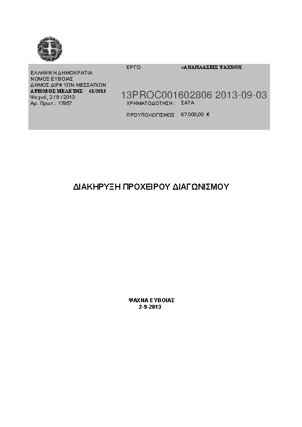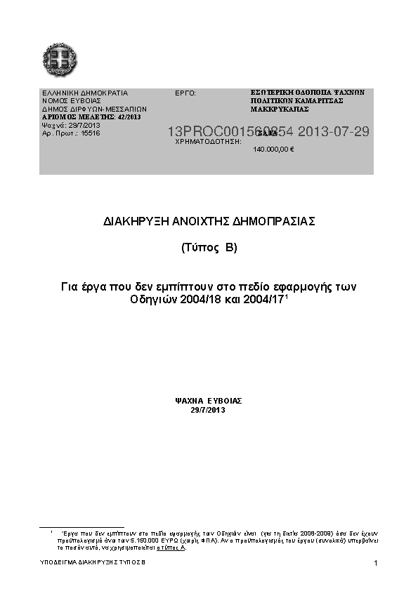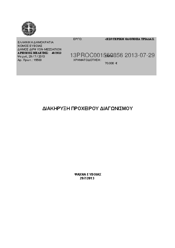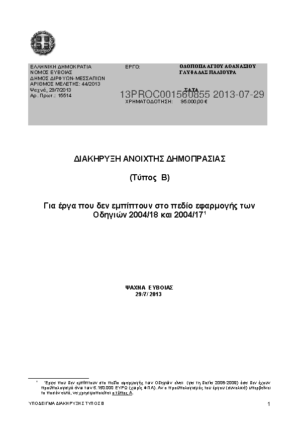 5. ΔΙΑΚΗΡΥΞΗ ΓΙΑ ΤΟ ΕΡΓΟ ΜΕ ΤΙΤΛΟ: ΄΄ ΟΔΟΠΟΙΪΑ ΑΓ. ΑΘΑΝΑΣΙΟΥ, ΓΛΥΦΑΔΑΣ, ΠΑΛΙΟΥΡΑ΄΄