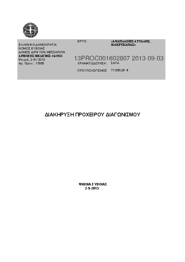 1. ΔΙΑΚΗΡΥΞΗ ΓΙΑ ΤΟ ΕΡΓΟ : ΑΝΑΠΛΑΣΕΙΣ ΑΤΤΑΛΗΣ, ΜΑΚΡΥΚΑΠΑΣ