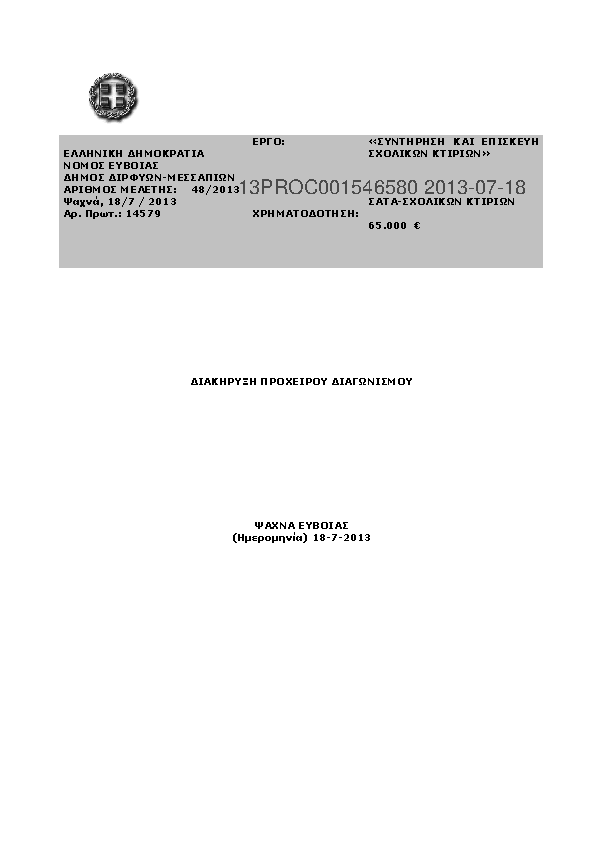 8. ΔΙΑΚΗΡΥΞΗ ΓΙΑ ΤΟ ΕΡΓΟ : ΄΄ ΣΥΝΤΗΡΗΣΗ ΚΑΙ ΕΠΙΣΚΕΥΗ ΣΧΟΛΙΚΩΝ ΚΤΙΡΙΩΝ΄΄