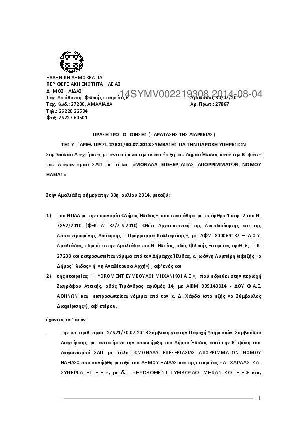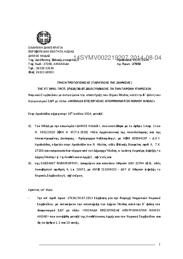 4. ΠΡΑΞΗ ΤΡΟΠΟΠΟΙΗΣΗΣ (ΠΑΡΑΤΑΣΗΣ ΤΗΣ ΔΙΑΡΚΕΙΑΣ) Nομικού Συμβούλου B φάσης διαγωνισμού ΣΔIT