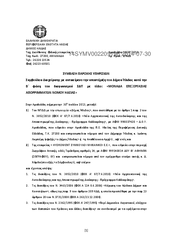 1. ΣΥΜΒΑΣΗ ΠΑΡΟΧΗΣ ΥΠΗΡΕΣΙΩΝ Συμβούλου Διαχείρισης για ΜΕΑ με ΣΔΙΤ