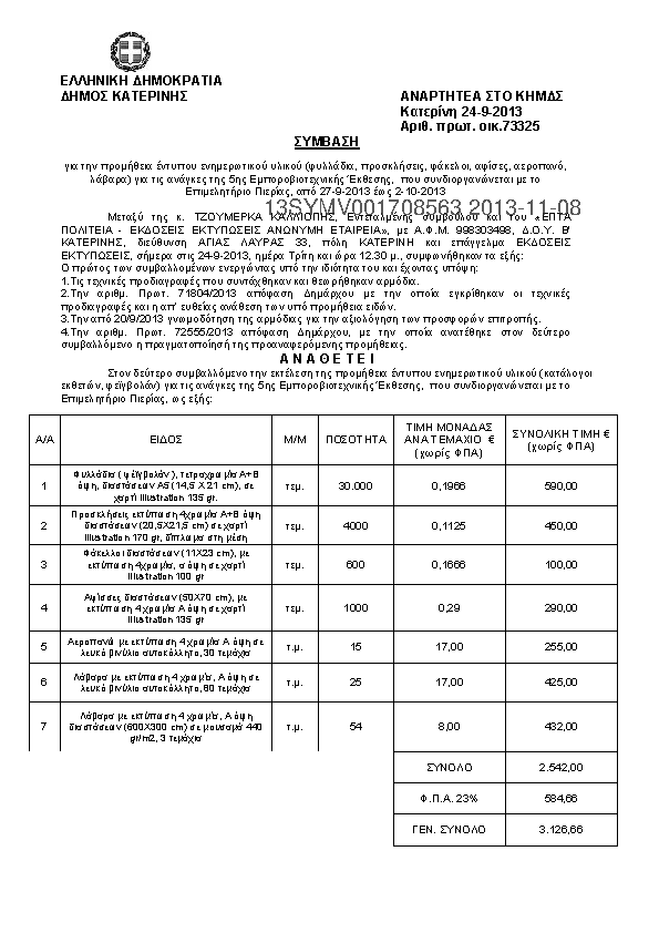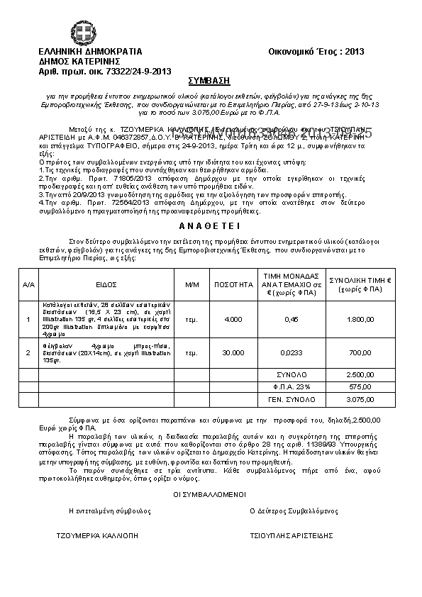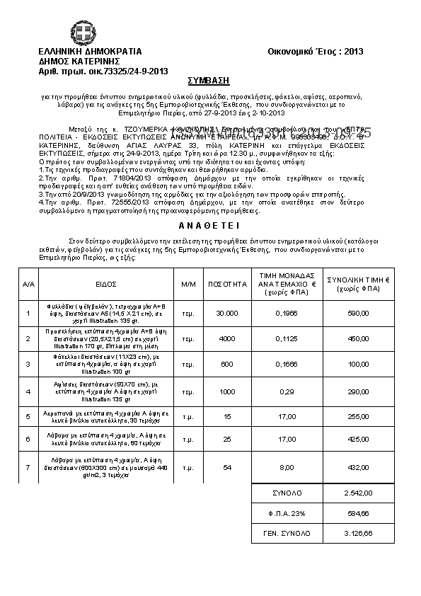 3. Προμήθεια έντυπου ενημερωτικού υλικού για τις ανάγκες της 5ης Εμποροβιοτεχνικής έκθεσης Πιερίας