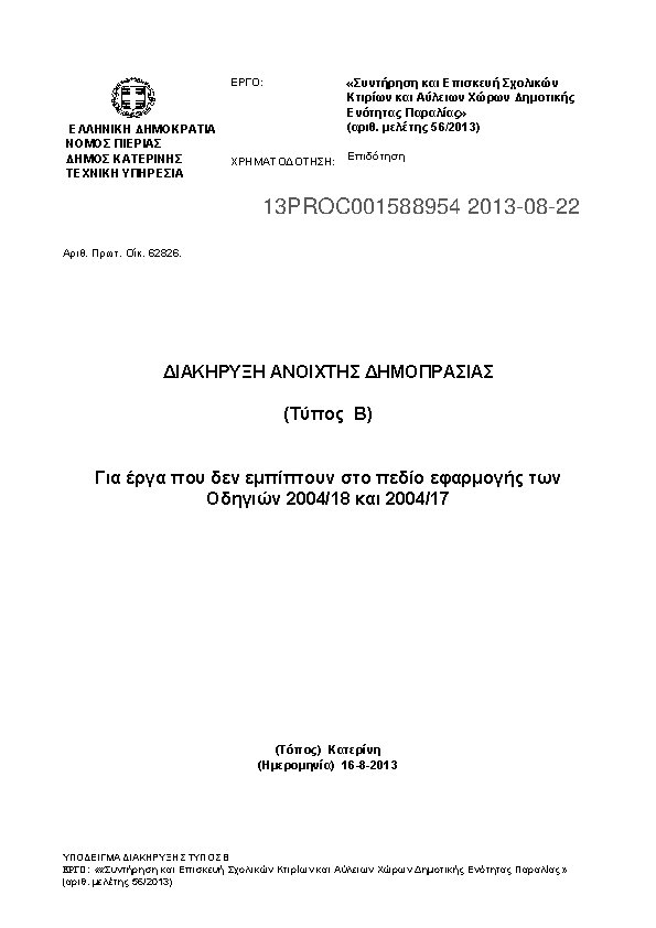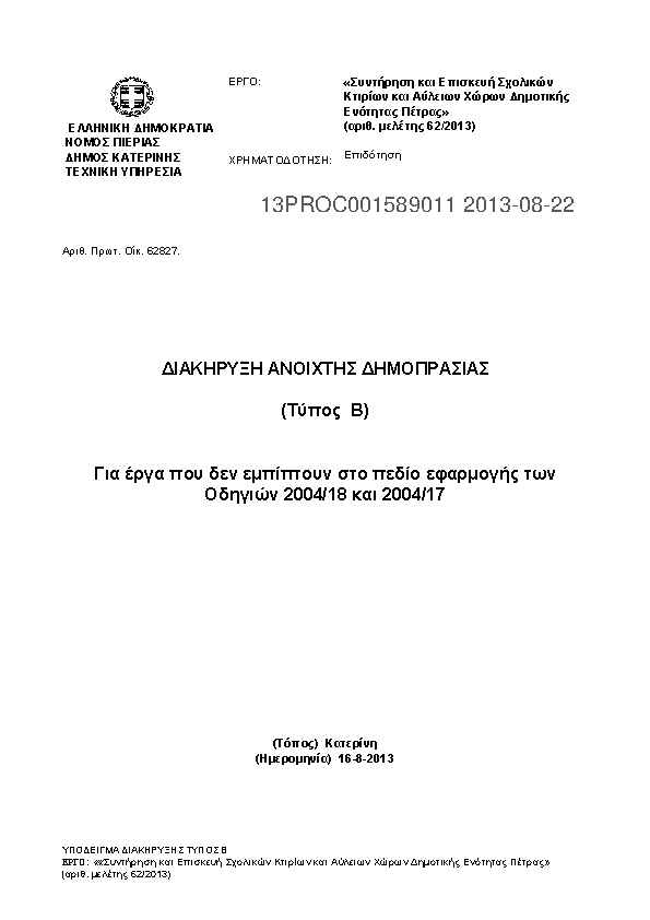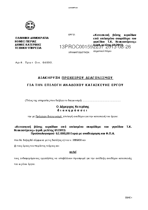 Αναζήτηση σε προκηρύξεις και συμβάσεις για: