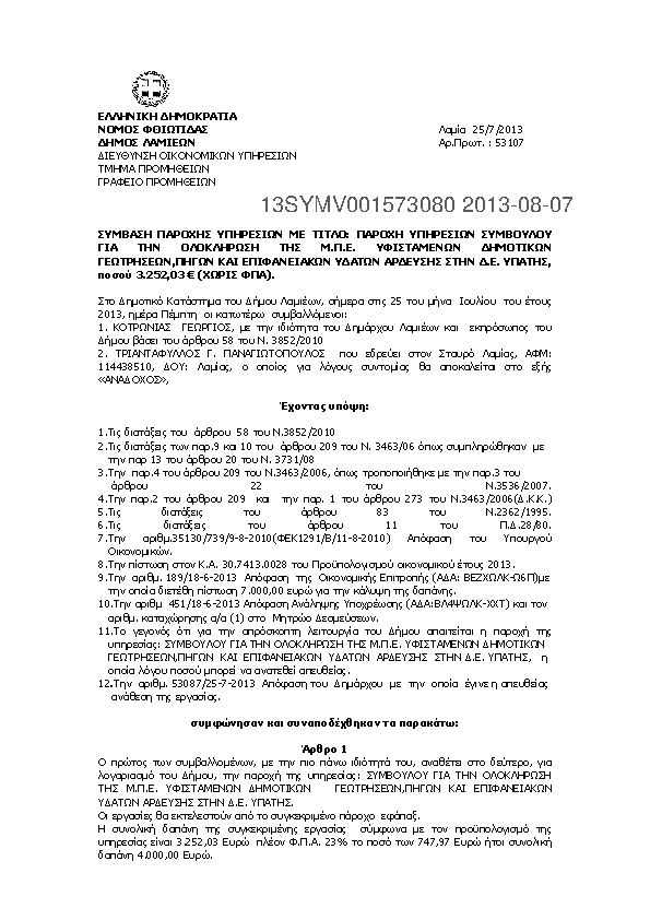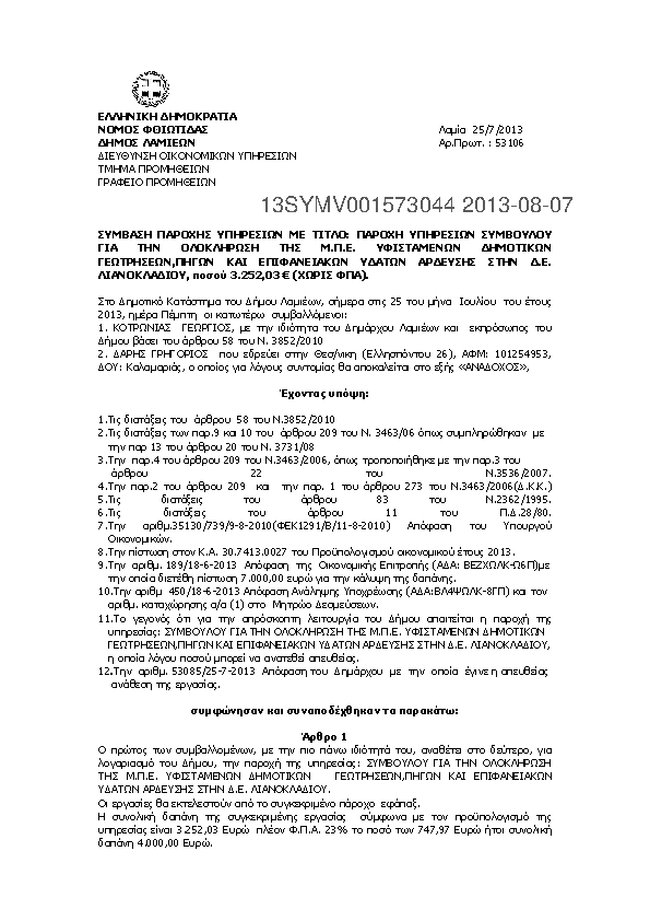 7. ΠΑΡ.ΥΠΗΡ.ΣΥΜΒ.ΓΙΑ ΤΗΝ ΟΛΟΚΛ. Μ.Π.Ε. ΥΦΙΣΤΑΜ.ΔΗΜΟΤ.ΓΕΩΤΡ.ΠΗΓΩΝ & ΕΠΙΦΑΝ.ΥΔΑΤΩΝ ΑΡΔ.Δ.Ε.ΛΙΑΝ/ΔΙΟΥ