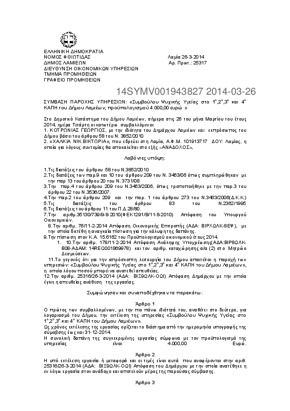 8. ΥΠΗΡΕΣΙΕΣ ΣΥΜΒΟΥΛΟΥ ΨΥΧΙΚΗΣ ΥΓΕΙΑΣ ΣΤΟ 1,2,3,4 ΚΑΠΗ ΤΟΥ ΔΗΜΟΥ ΛΑΜΙΕΩΝ