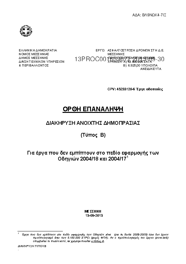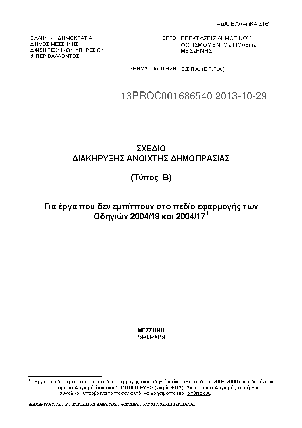 4. ΔΙΑΚΗΡΥΞΗ ΑΝΟΙΚΤΟΥ ΔΙΑΓΩΝΙΣΜΟΥ ΓΙΑ ΤΟ ΕΡΓΟ "ΕΠΕΚΤΑΣΕΙΣ ΔΗΜΟΤΙΚΟΥ ΦΩΤΙΣΜΟΥ ΕΝΤΟΣ ΠΟΛΕΩΣ ΜΕΣΣΗΝΗΣ"