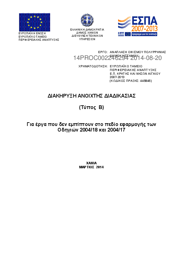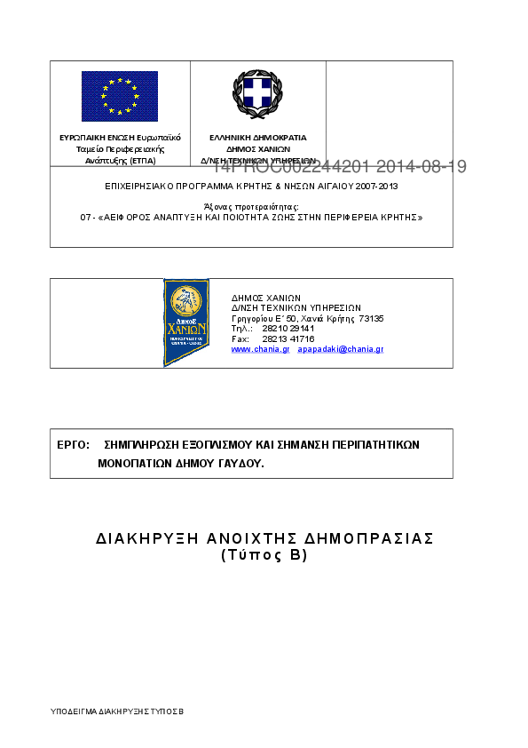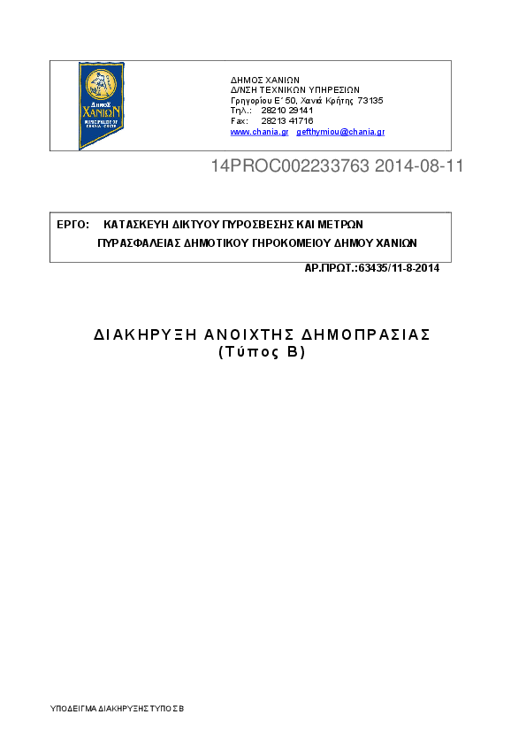 1. ΔΙΑΚΗΡΥΞΗ ΕΡΓΟΥ(ΚΑΤΑΣΚΕΥΗ ΔΙΚΤΥΟΥ ΠΥΡΟΣΒΕΣΗΣ ΚΑΙ ΜΕΤΡΩΝ ΠΥΡΑΣΦΑΛΕΙΑΣ ΔΗΜ.ΓΗΡΟΚΟΜΕΙΟΥ Δ.ΧΑΝΙΩΝ)