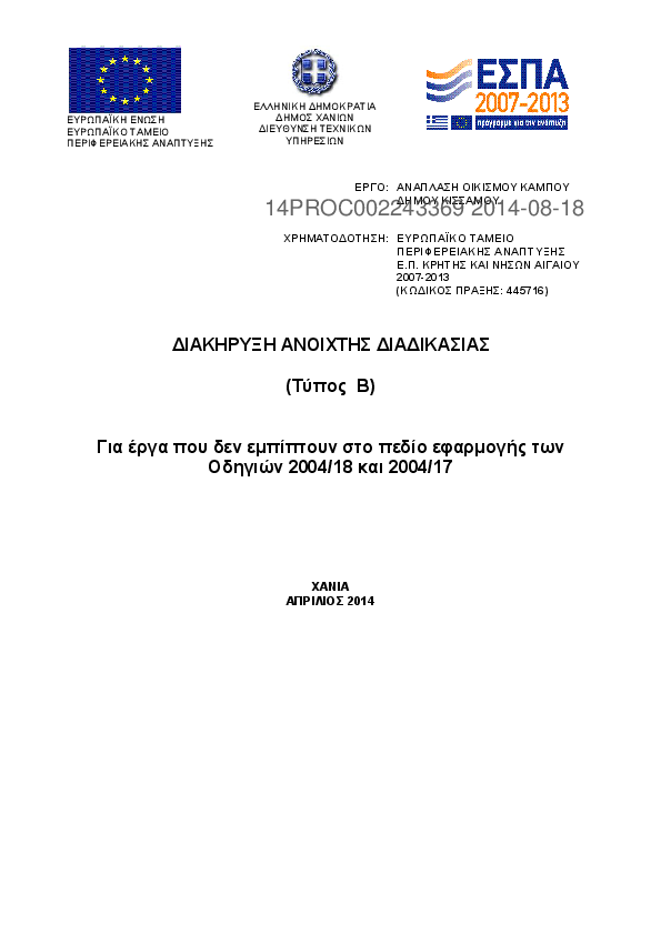 2. ΔΙΑΚΗΡΥΞΗ ΑΝΟΙΧΤΗΣ ΔΙΑΔΙΚΑΣΙΑΣ Ανάπλαση Οικισμού Κάμπου Δήμου Κισσάμου