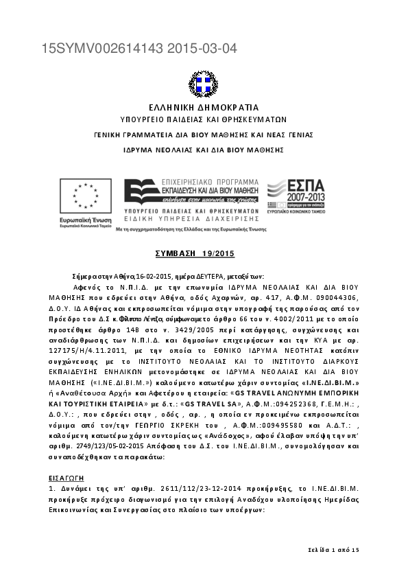 Αναζήτηση σε προκηρύξεις και συμβάσεις για: