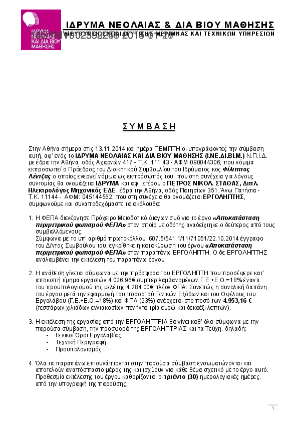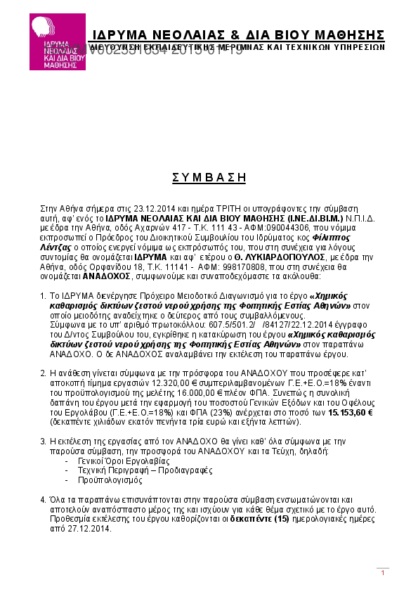 1. ΣΥΜΒΑΣΗ ΜΙΣΘΩΣΗΣ ΕΡΓΟΥ ΚΑΘΑΡΙΟΤΗΤΑΣ