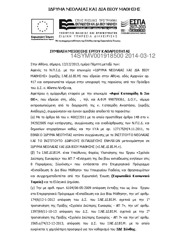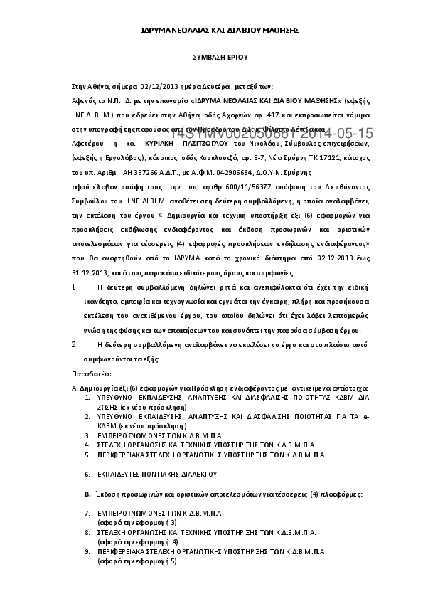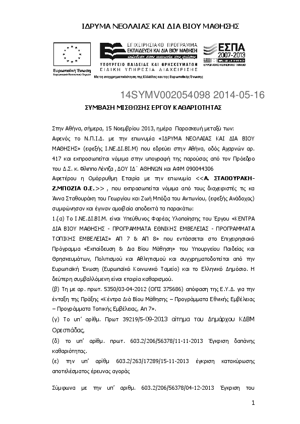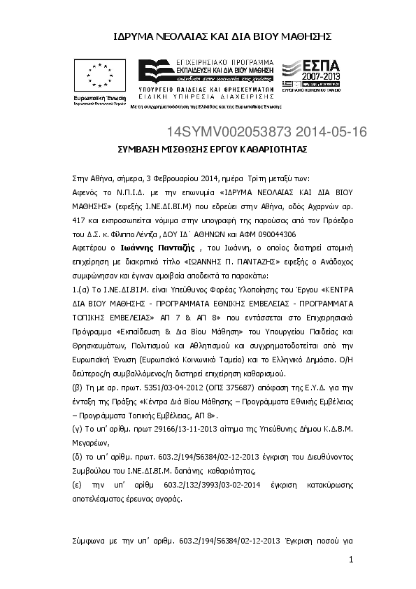 1. ΣΥΜΒΑΣΗ 23/2013 ΥΠΟΕΡΓΟΥ "ΑΞΙΟΛΟΓΗΣΗ ΠΡΟΓΡΑΜΜΑΤΟΣ ΣΔΕ"