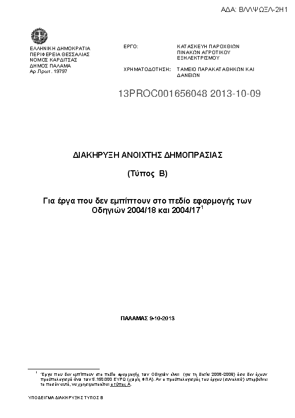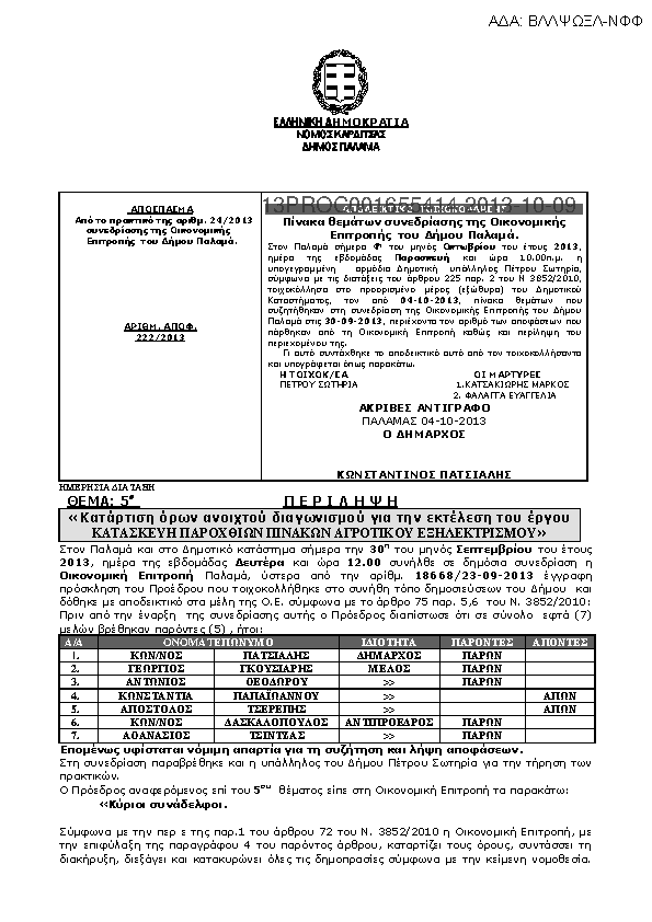 5. ΔΙΑΚΗΡΥΞΗ ΑΝΟΙΧΤΟΥ ΔΙΑΓΩΝΙΣΜΟΥ ΓΙΑ ΤΗΝ ΕΠΙΛΟΓΗ ΑΝΑΔΟΧΟΥ ΚΑΤΑΣΚΕΥΗΣ ΤΟΥ ΕΡΓΟΥ ΚΑΤΑΣΚΕΥΗ ΠΑΡΟΧΘΙΩΝ ΠΙΝΑΚΩΝ ΑΓΡΟΤΙΚΟΥ ΕΞΗΛΕΚΤΡΙΣΜΟΥ