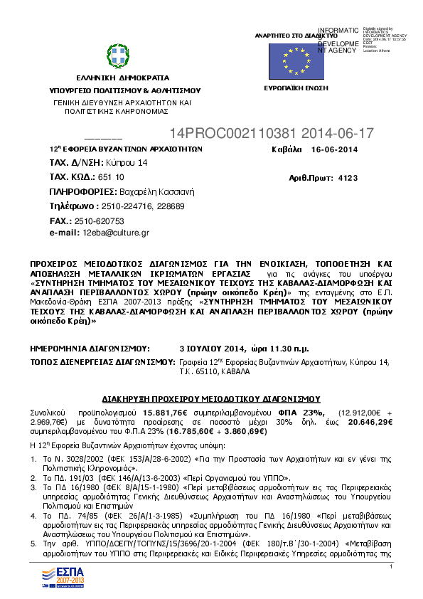 Αναζήτηση σε προκηρύξεις και συμβάσεις για: