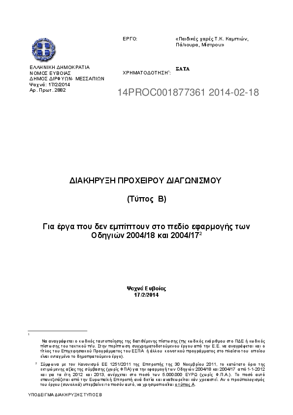 2. ΔΙΑΚΗΡΥΞΗ ΓΙΑ ΤΟ ΕΡΓΟ '' ΟΔΟΠΟΙΙΑ ΝΕΡΟΤΡΙΒΙΑΣ, ΨΑΧΝΩΝ, ΚΥΠΑΡΙΣΣΙΟΥ, ΜΑΚΡΥΚΑΠΑΣ΄΄