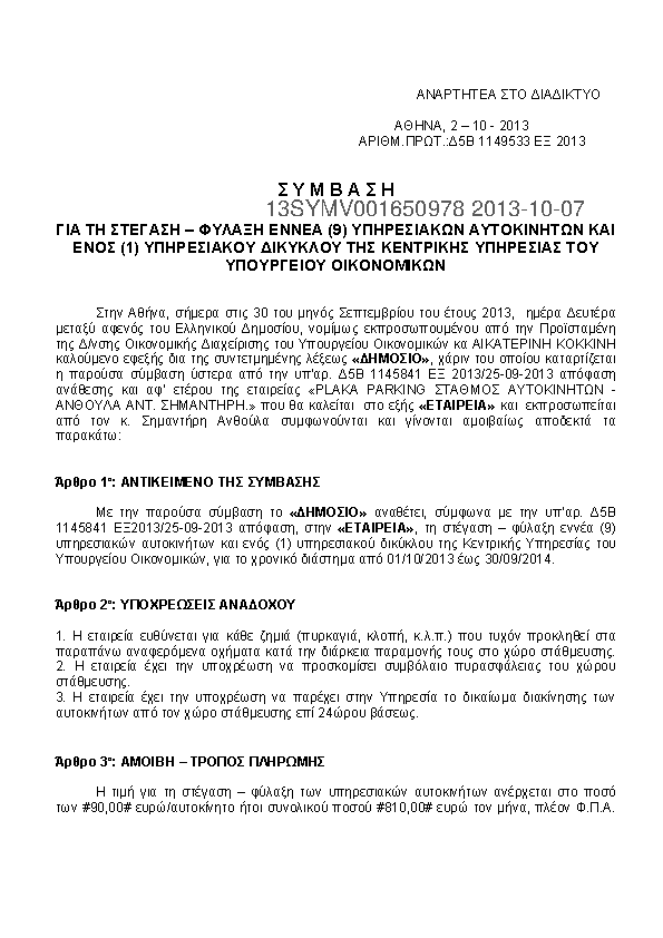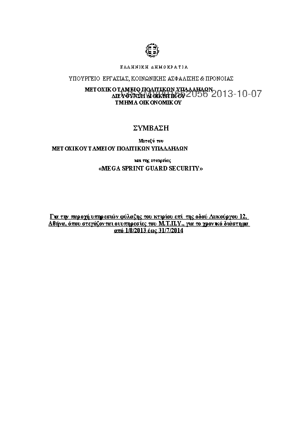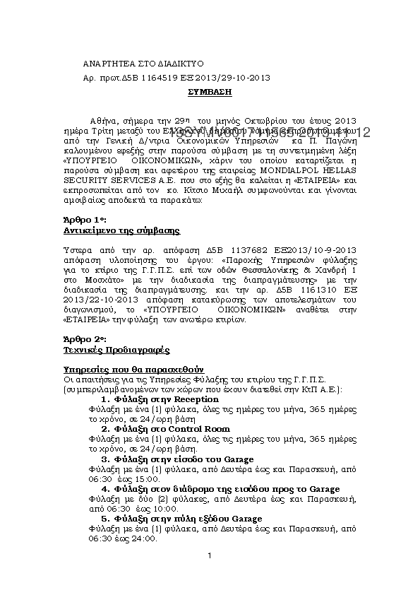 9. ΣΥΜΒΑΣΗ ΓΙΑ ΤΗ ΦΥΛΑΞΗ ΤΩΝ ΚΤΙΡΙΩΝ ΤΩΝ ΚΕΝΤΡΙΚΩΝ ΥΠΗΡΕΣΙΩΝ ΤΟΥ Γ.Λ.Κ.