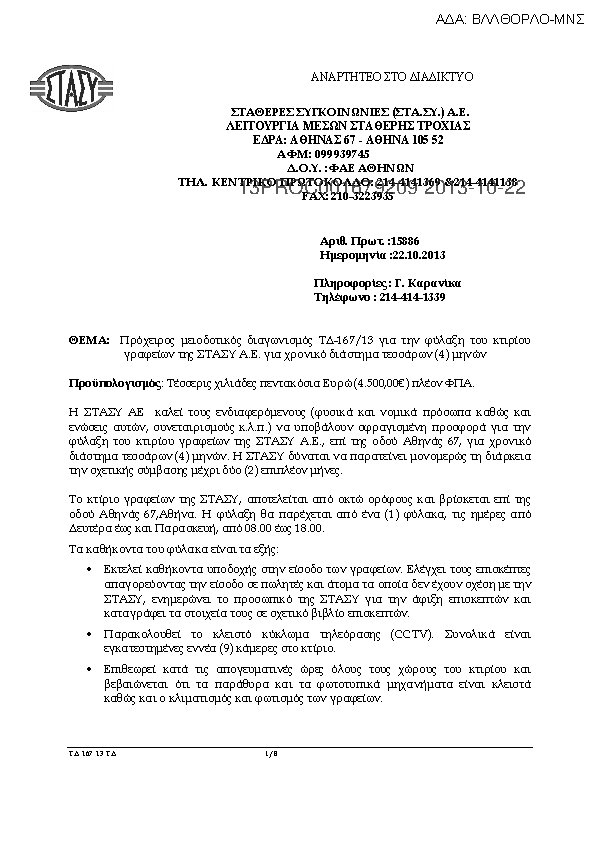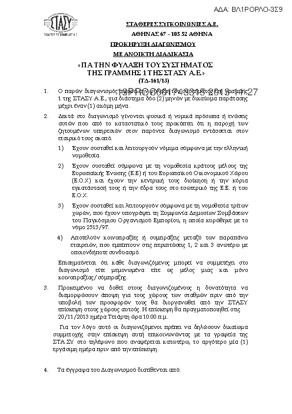 2. «ΓΙΑ ΤΗΝ ΦΥΛΑΞΗ ΤΟΥ ΣΥΣΤΗΜΑΤΟΣ ΤΗΣ ΓΡΑΜΜΗΣ 1 ΤΗΣ ΣΤΑΣΥ Α.Ε.» (ΤΔ