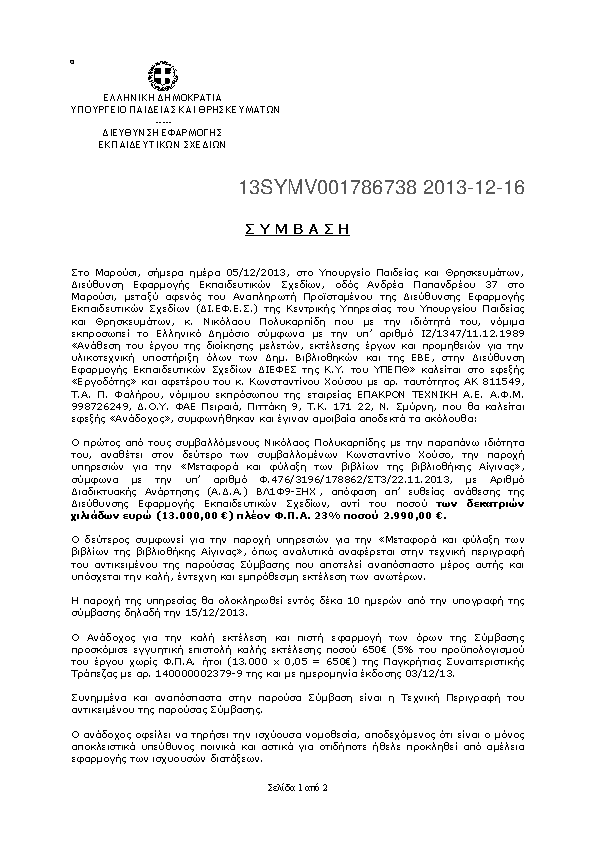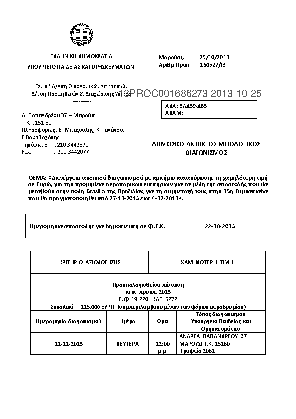 Αναζήτηση σε προκηρύξεις και συμβάσεις για: