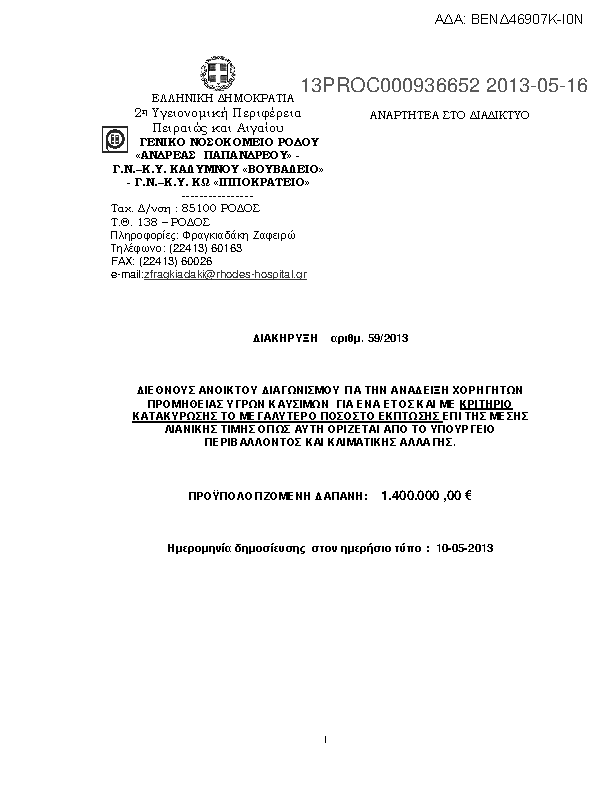 5. ΔΙΑΚΗΡΥΞΗ 59/2013 ΔΙΕΘΝΗΣ ΔΙΑΓΩΝΙΣΜΟΣ ΠΡΟΜΗΘΕΙΑΣ ΥΓΡΩΝ ΚΑΥΣΙΜΩΝ
