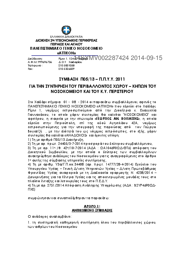8. ΣΥΜΒΑΣΗ Π05/13 - ΣΥΝΤΗΡΗΣΗ ΠΕΡΙΒΑΛΛΟΝΤΟΣ ΧΩΡΟΥ - ΚΗΠΩΝ ΤΟΥ ΝΟΣΟΚΟΜΕΙΟΥ & Κ.Υ. ΠΕΡΙΣΤΕΡΙΟΥ