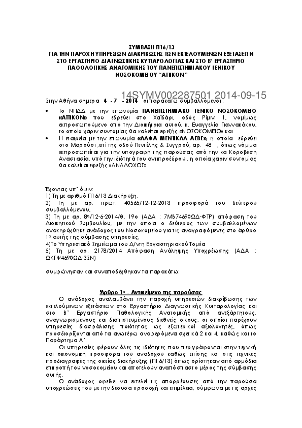 6. ΣΥΜΒΑΣΗ Π16/13 - ΔΙΑΚΡΙΒΩΣΗ ΕΚΤΕΛΟΥΜΕΝΩΝ ΕΞΕΤΑΣΕΩΝ ΣΤΟ ΕΡΓ. ΔΙΑΓΝ. ΚΥΤΤΑΡΟΛΟΓΙΑΣ & Β΄ ΕΡΓ. ΠΑΘΟΛ. ΑΝ