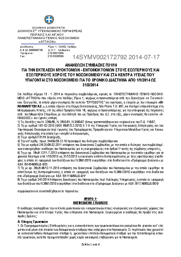 3. ΣΥΜΒΑΣΗ ΓΙΑ ΤΗΝ ΕΚΤΕΛΕΣΗ ΜΥΟΚΤΟΝΙΩΝ - ΕΝΤΟΜΟΚΤΟΝΙΩΝ ΣΤΟΥΣ ΕΣΩΤΕΡΙΚΟΥΣ ΚΑΙ ΕΞΩΤΕΡΙΚΟΥΣ ΧΩΡΟΥΣ ΤΟΥ ΝΟΣ