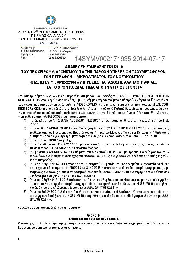 4. ΑΝΑΝΕΩΣΗ ΣΥΜΒΑΣΗΣ ΓΙΑ ΤΗΝ ΠΑΡΟΧΗ ΥΠΗΡΕΣΙΩΝ ΤΑΧΥΜΕΤΑΦΟΡΩΝ ΤΩΝ ΕΓΓΡΑΦΩΝ – ΜΙΚΡΟΔΕΜΑΤΩΝ ΤΟΥ ΝΟΣΟΚΟΜΕΙΟΥ