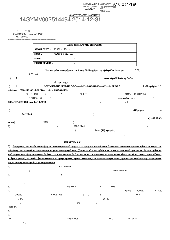 8. ΣΥΜΒΑΣΗ ΓΙΑ ΤΗΝ ΣΥΝΤΗΡΗΣΗ ΚΑΙ ΕΠΙΣΚΕΥΗ