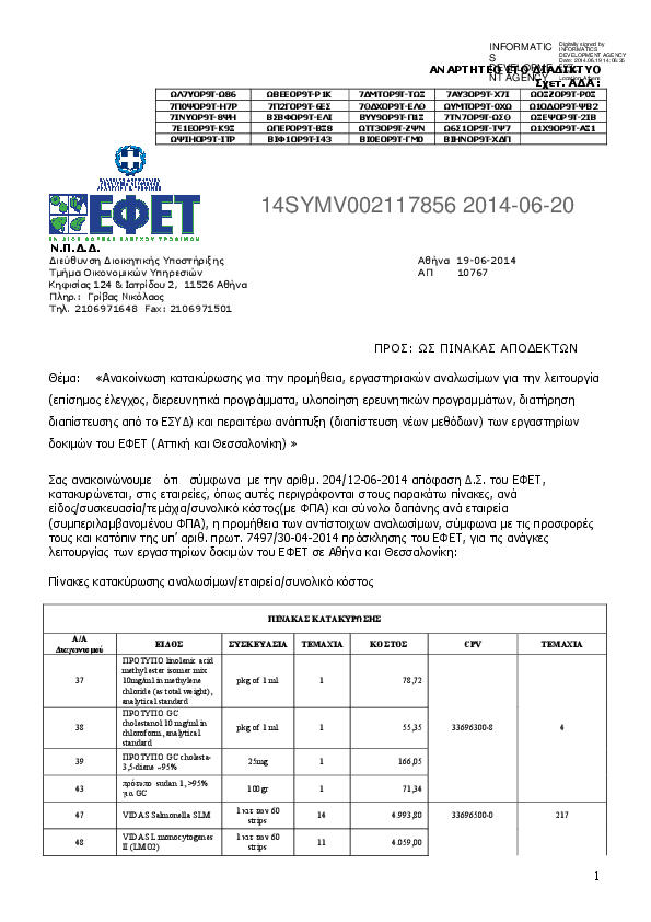 8. Προμήθεια, εργαστηριακών αναλωσίμων για την λειτουργία των εργαστηρίων δοκιμών του ΕΦΕΤ