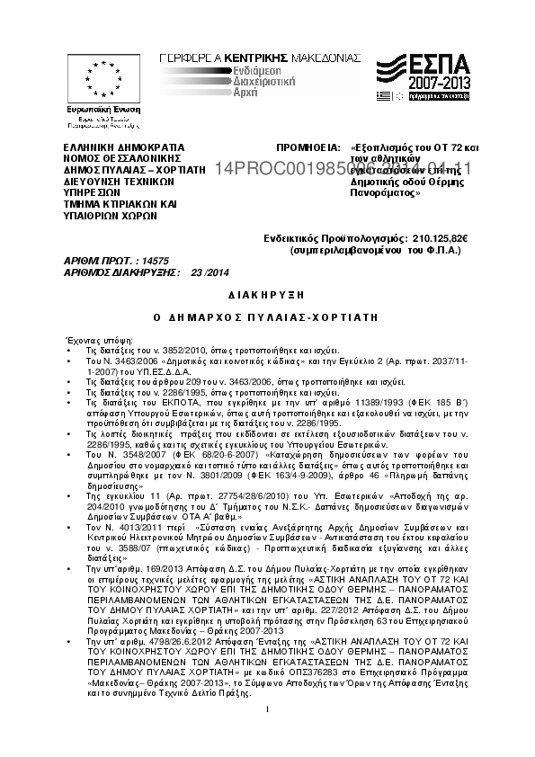 2. ΔΙΑΚΗΡΥΞΗ ΓΙΑ ΤΗΝ ΠΡΟΜΗΘΕΙΑ ΕΞΟΠΛΙΣΜΟΥ ΤΟΥ ΟΤ 72 ΑΘΛΗΤΙΚΩΝ ΕΓΚΑΤΑΣΤΑΣΕΩΝ ΕΠΙ ΤΗΣ ΟΔΟΥ ΘΕΡΜΗΣ ΠΑΝΟΡΑΜΑΤΟΣ.