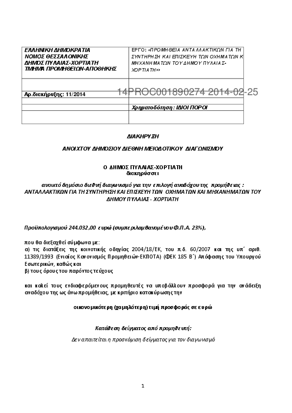 Αναζήτηση σε προκηρύξεις και συμβάσεις για:
