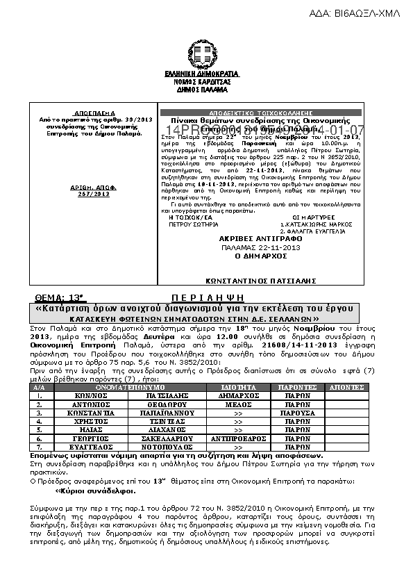 4. Απόφαση Οικονομικής Επιτροπής περί Κατάρτισης όρων ανοιχτού διαγωνισμού για την εκτέλεση του έργου ΚΑΤΑΣΚΕΥΗ ΦΩΤΕΙΝΩΝ ΣΗΜΑΤΟΔΟΤΩΝ ΣΤΗΝ Δ.Ε. ΣΕΛΛΑΝΩΝ