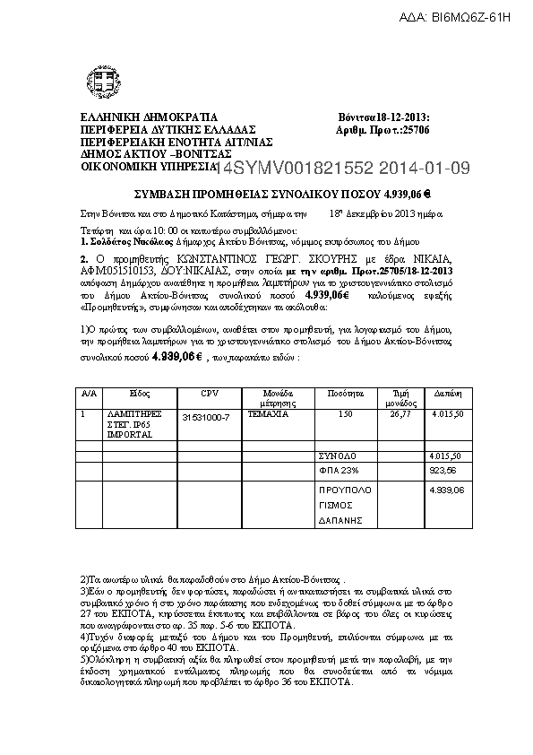 6. ΣΥΜΒΑΣΗ ΠΡΟΜΗΘΕΙΑΣ ΛΑΜΠΤΗΡΩΝ ΓΙΑ ΤΟ ΣΤΟΛΙΣΜΟ ΤΟΥ ΔΗΜΟΥ ΑΚΤΙΟΥ ΒΟΝΙΤΣΑΣ 2