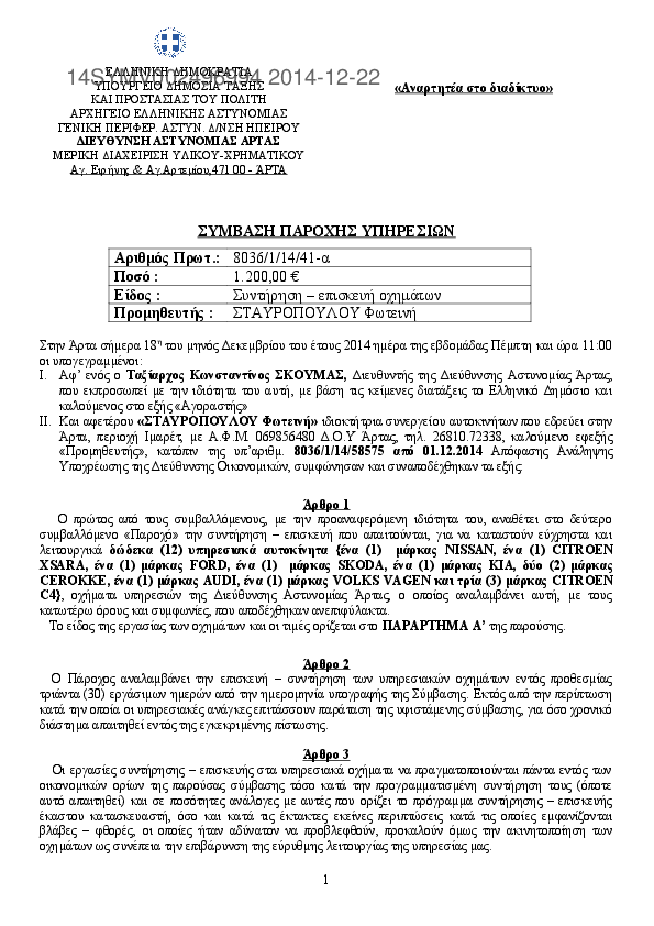 1. ΣΥΜΒΑΣΗ ΓΙΑ ΤΗΝ ΑΜΟΙΒΗ ΣΥΝΤΗΡΗΣΗΣ-ΕΠΙΣΚΕΥΗΣ ΟΧΗΜΑΤΩΝ ΜΑΡΚΑΣ SCODA