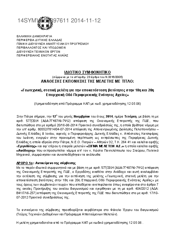 10. Γεωτεχνική, στατική μελέτη για την αποκατάσταση βατότητας στην 18η και 20η Επαρχιακή Οδό Π.Ε. Αχαϊας