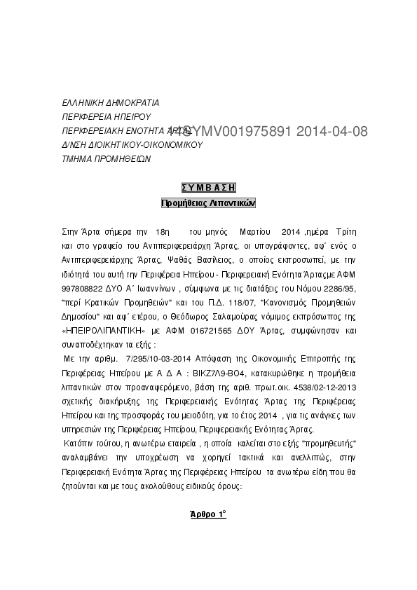 3. ΣΥΜΒΑΣΗ ΠΡΟΜΗΘΕΙΑΣ ΛΙΠΑΝΤΙΚΩΝ ΓΙΑ ΤΙΣ ΑΝΑΓΚΕΣ ΤΗΣ ΠΕ ΑΡΤΑΣ ΓΙΑ ΤΟ ΕΤΟΣ 2014