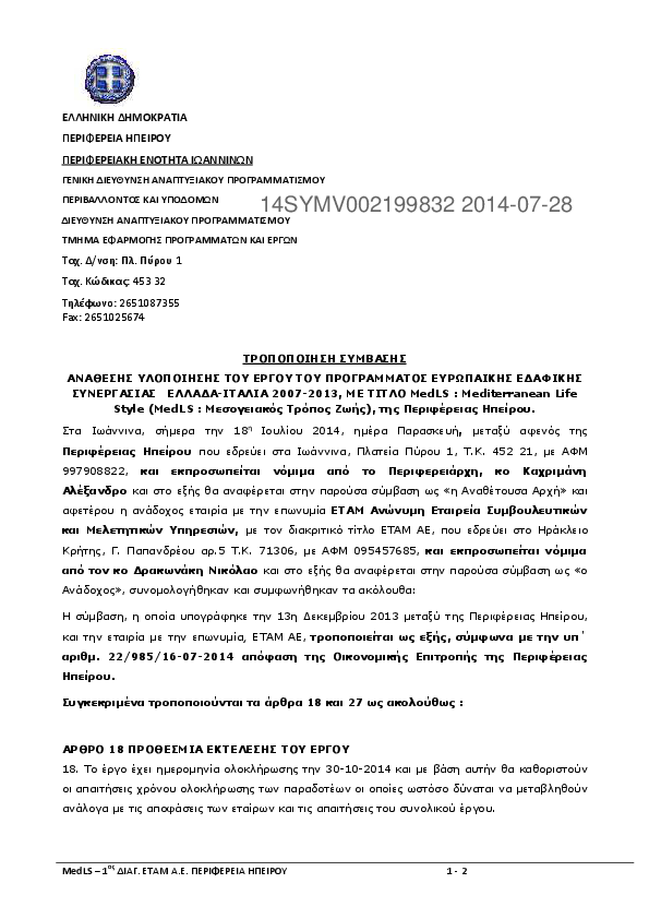 5. ΤΡΟΠΟΠΟΙΗΣΗ ΣΥΜΒΑΣΗΣ ΑΝΑΘΕΣΗΣ ΥΛΟΠΟΙΗΣΗΣ ΤΟΥ ΕΡΓΟΥ MedLS